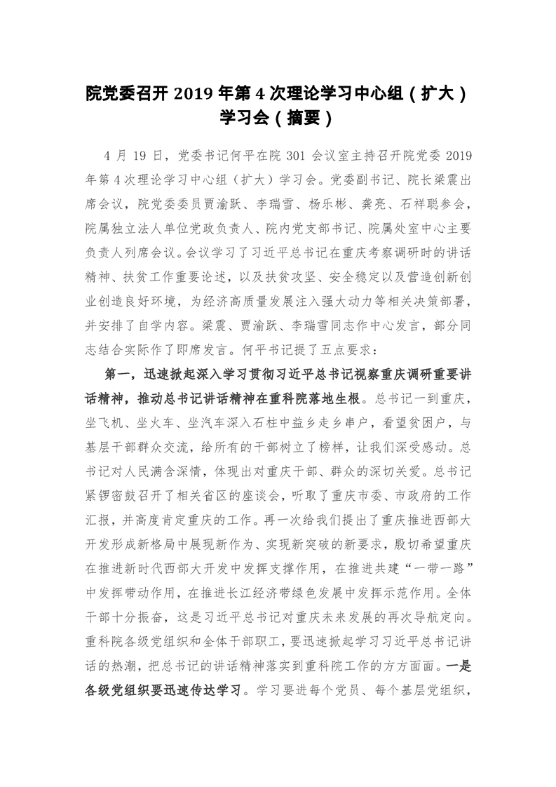 重科凯发k8国际2019年第4次理论学习中心组(扩大)学习会新闻(摘要)
