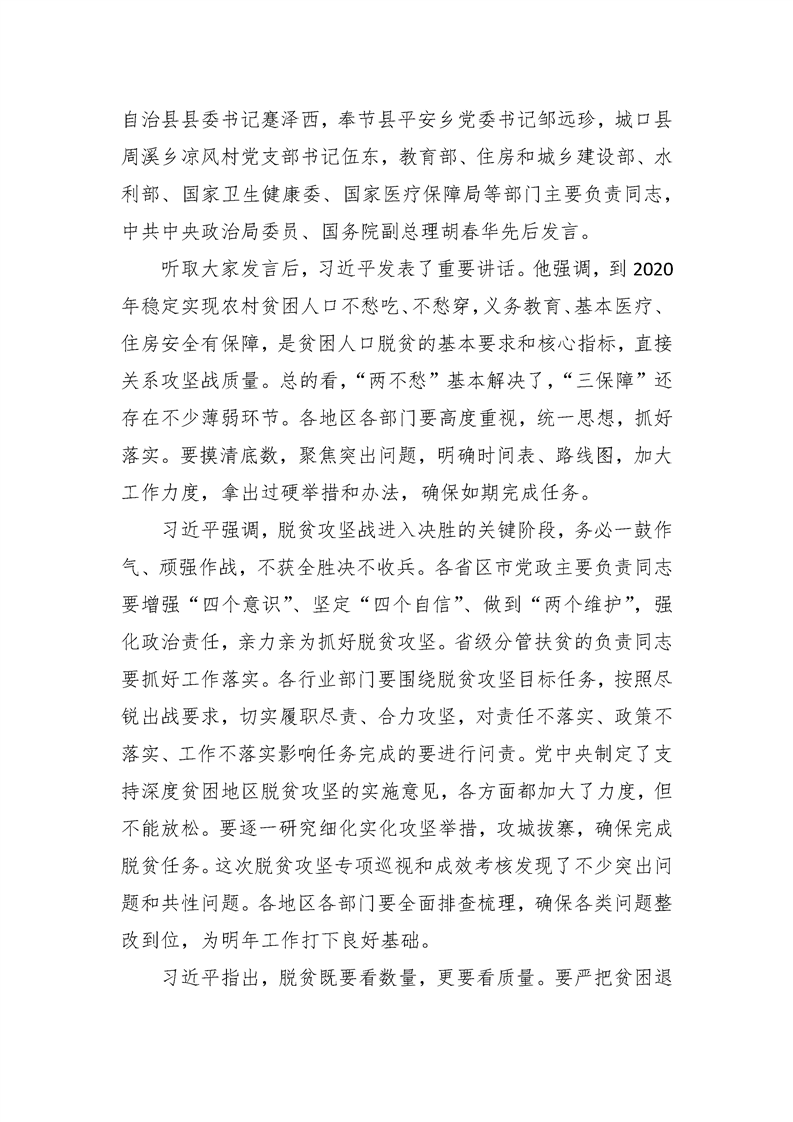 统一思想一鼓作气顽强作战越战越勇 着力解决“两不愁三保障”突出问题——习近平在重庆考察并主持召开解决“两不愁三保障”突出问题座谈会上的讲话精神