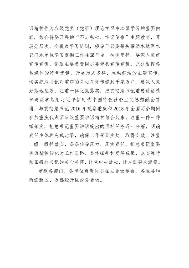 传达学习贯彻习近平总书记视察重庆重要讲话精神牢记嘱托 锐意进取 担当作为 不断开创重庆各项事业开展新局面