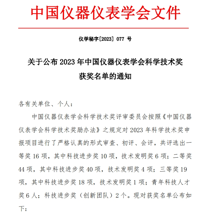 近期,中国仪器仪表学会公布“2023年中国仪器仪表学会科学技术奖获奖名单”,凯发k8国际自动化所公司以第二完成单位参与“高性能温度传感器关键技术开发与产业化”项目荣获科技进步二等奖。