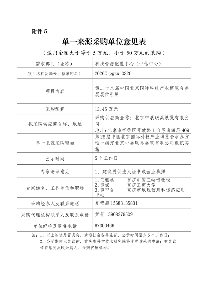 单一来源采购单位意见表