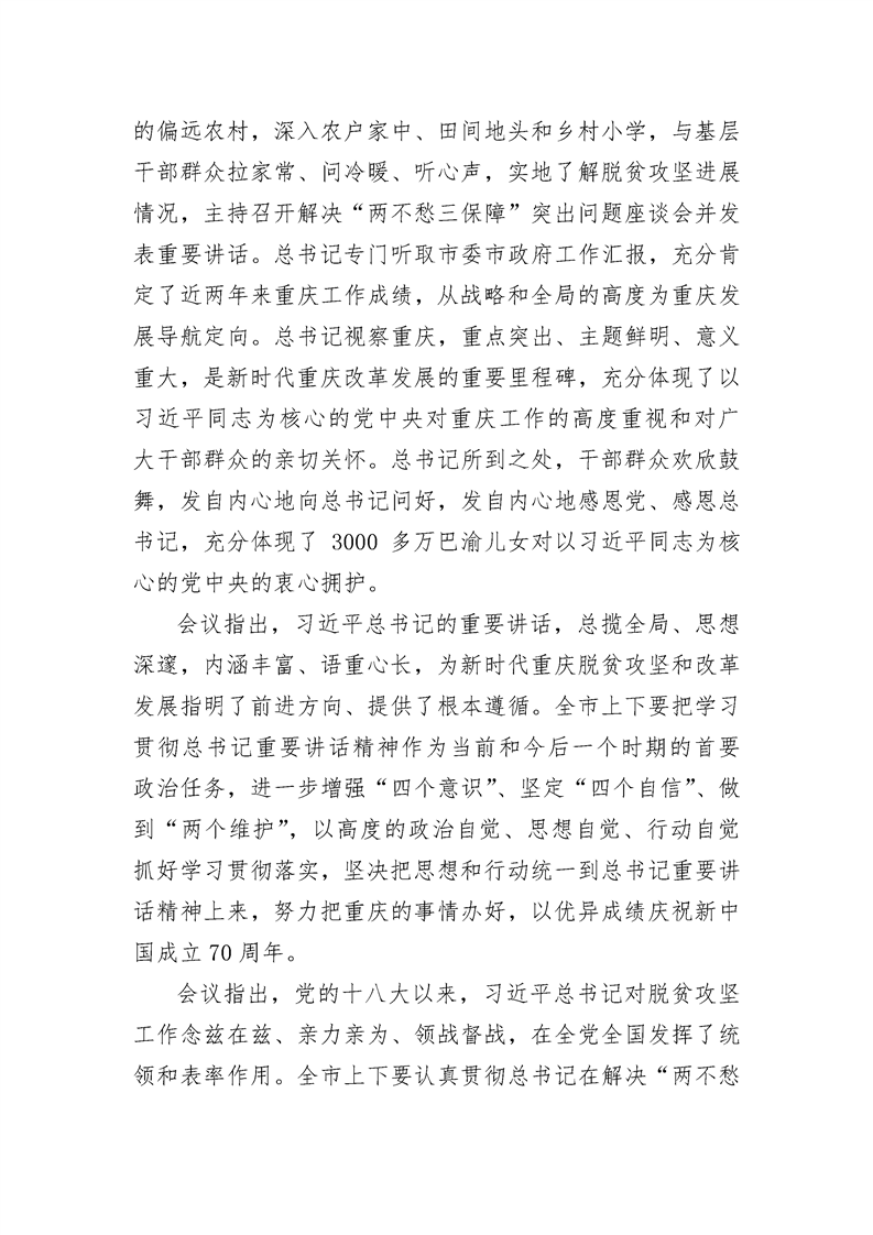 传达学习贯彻习近平总书记视察重庆重要讲话精神牢记嘱托 锐意进取 担当作为 不断开创重庆各项事业开展新局面
