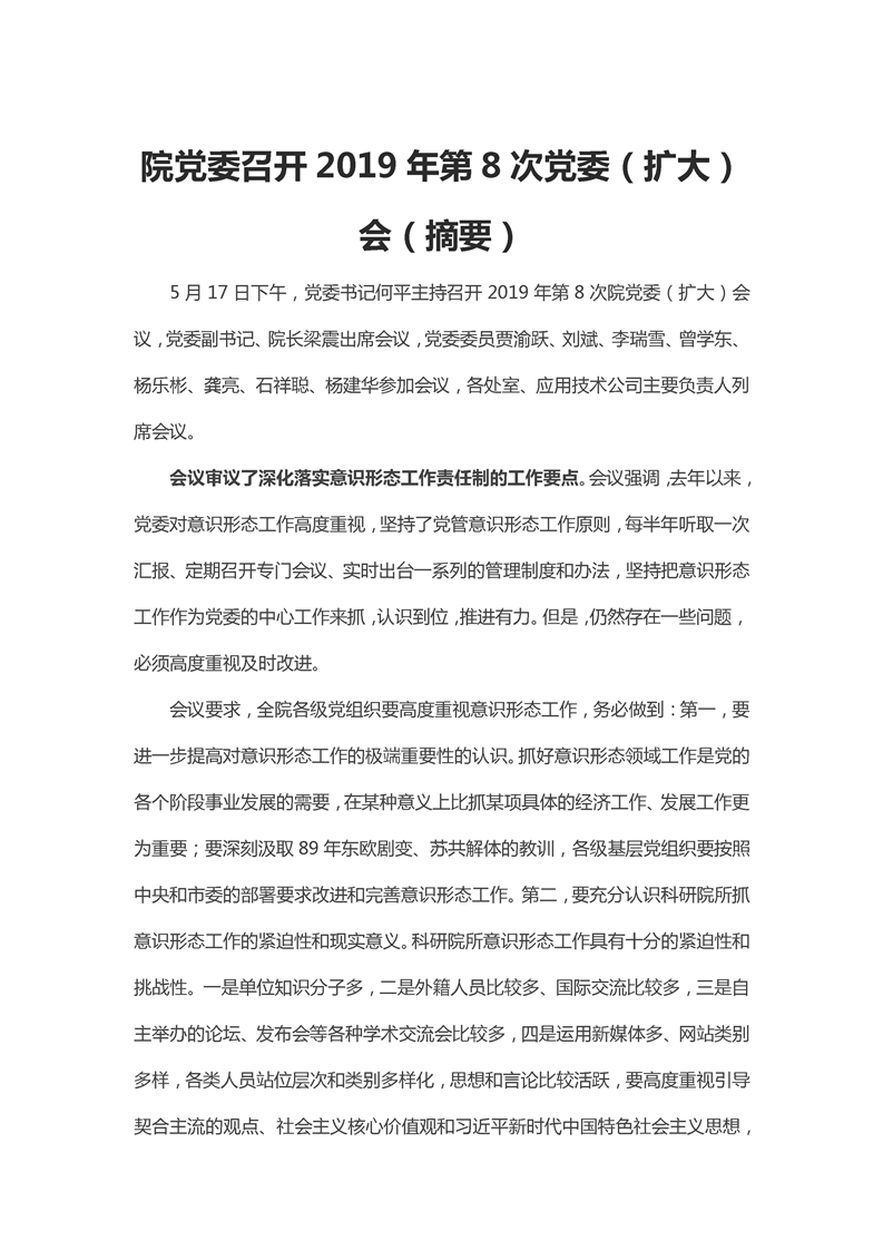 重科凯发k8国际召开2019年第8次党委(扩大)会新闻(摘要)