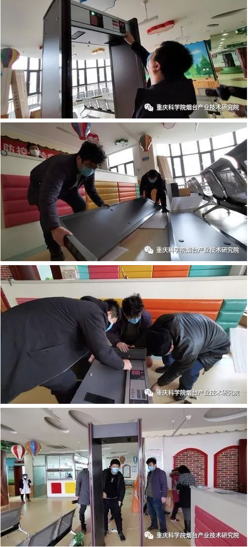 新冠病毒肺炎疫情发生以后,重庆科学技术研究院烟台产业技术研究院第一时间启动疫情应急科研攻关预案,组织创建专项研发小组,集中精力、协同攻关,结合一线防控需求,研发出红外人体测温仪、高精度体温检测门、公众智能消毒服务设备等系列智能抗击疫情创新产品。为尽快将研究成果应用到战胜疫情中,特殊时期,重庆科学技术研究院烟台产业技术研究院全院上下克服原材料供应不足、交通运输管制、人员分类限制等实际困难,顺利完成多功能高精度体温检测安全门产品研发生产并将首台研发产品捐赠属地。