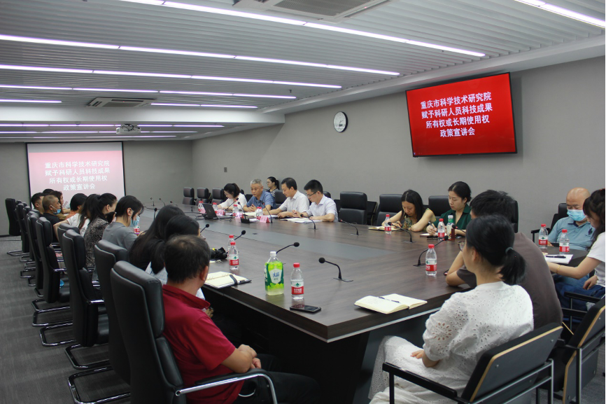 7月29日,凯发k8国际在重科智谷C座1203会议室举办“赋予科研人员职务科技成果所有权或长期使用权”政策宣讲会,邀请到市科技局成果处负责人岑军波、重庆理工大学产学研办公室技术服务中心负责人秦玲作政策解读和案例宣讲,院属各部门(单位)科技成果管理员、一线科研人员代表20余人参会。