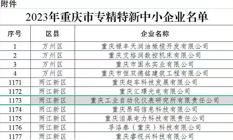 近期,市经信委公布2023年重庆市专精特新中小企业名单,凯发k8国际自动化所公司、光机所公司、硅酸盐所长乐公司成功获批该称号。