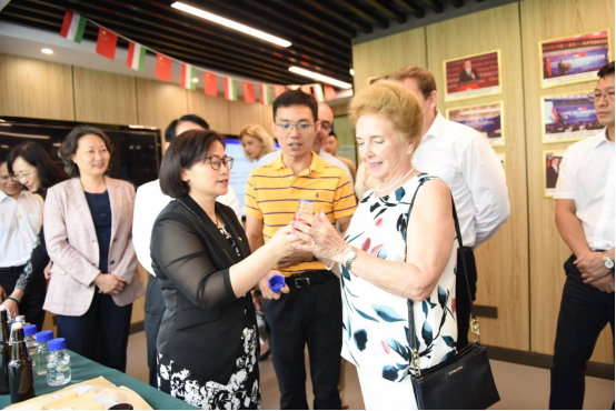 玛特劳伊一行听取了中匈技术转移中心基本情况、工作召开情况、未来展望等方面的工作汇报,并详细分析中心的运营、技术研发、科技成果转化等情况。在中匈技术转移中心服务基地,玛特劳伊一行与入驻组织代表进行研讨,并认真分析清咔水果蒸馏酒、发酵蚕蛹等中匈合作研发产品的技术工艺。玛特劳伊说:“希望能进一步加强合作,争取在农业科技方面有更多突破。”