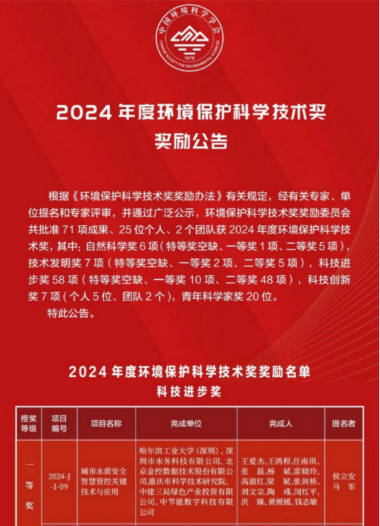 近期,中国环境科学学会公布了2024年度环境保护科学技术奖奖励名单,凯发k8国际低碳环保中心雷晓玲教授团队参研的“城市水质安全智慧管控关键技术与应用”项目取得科技进步奖一等奖。