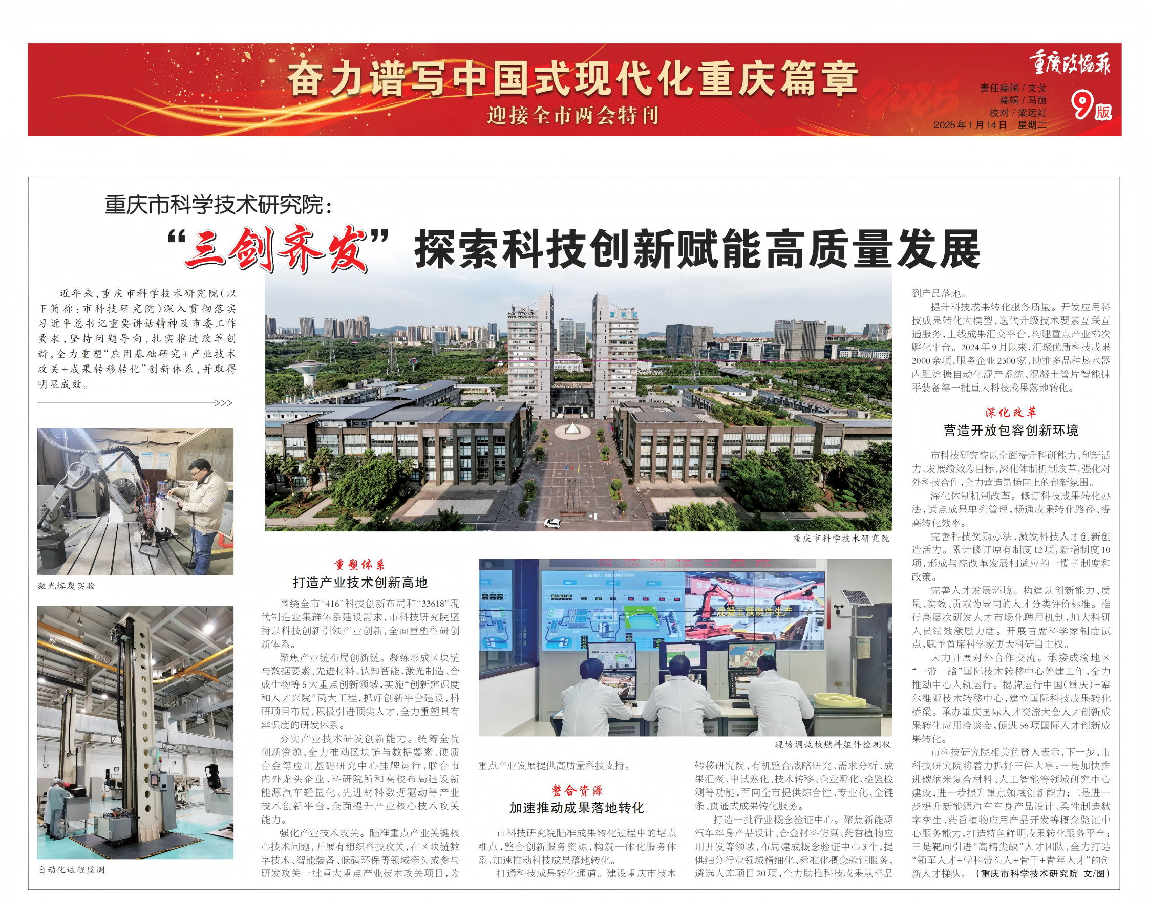 围绕全市“416”科技创新布局和“33618”现代制造业集群体系建设需求,市科技研究院坚持以科技创新引领产业创新,全面重塑科研创新体系。